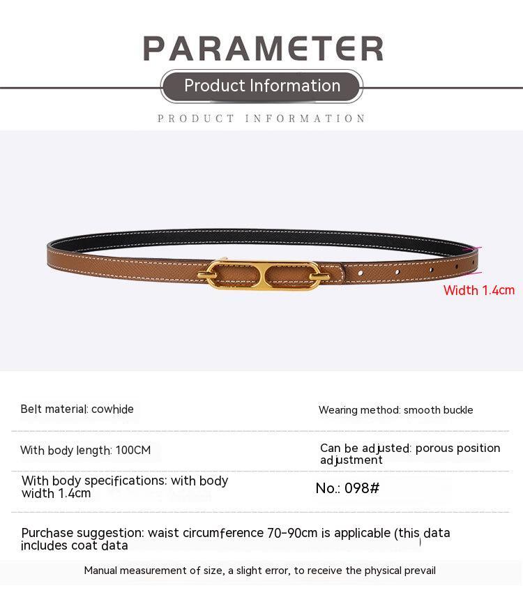 A Surprise Moon apresenta um cinto fino dupla face em couro genuíno, criado para mulheres que apreciam versatilidade com elegância.